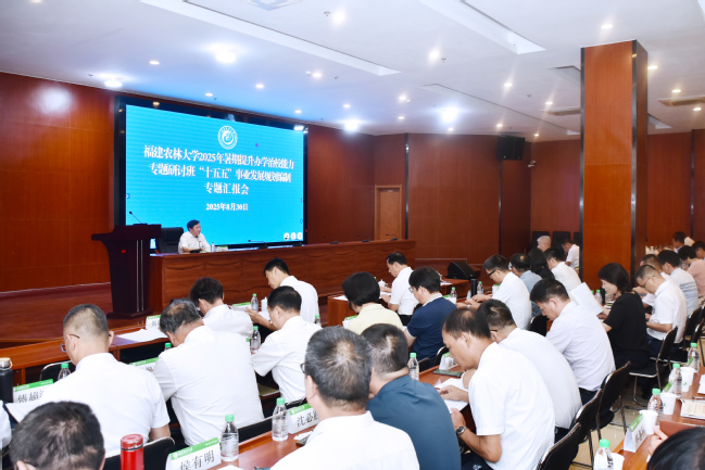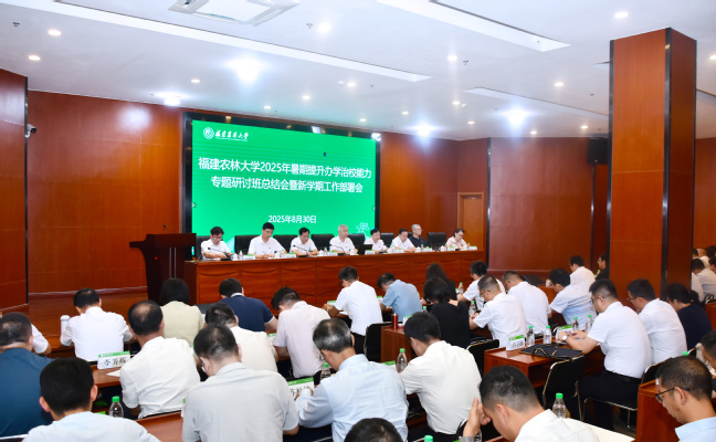 8月29日至30日,福建农林大学2025年暑期提升办学治校能力专题研讨班在南平校区举办。研讨班深入学习贯彻习近平总书记关于教育科技人才工作的重要论述和在福建考察时的重要讲话精神,贯彻落实教育强国、教育强省建设规划纲要,学习贯彻省委十一届八次全会精神、2025年全省高校领导干部办学治校能力提升研讨班精神,加快落实学?!笆奈濉惫婊勘耆挝瘢蒲被!笆逦濉狈⒄构婊?,奋进国家“双一流”高校。校党委书记赖海榕,校长兰思仁,校党委副书记陈世奎、曾华平,副校长郑宝东、林庆藩、唐振鹏、周顺桂,校纪委书记陈艳及校中层正职参加。