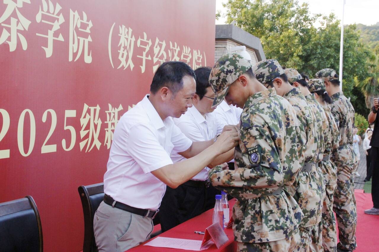 9月21日下午,安溪茶学院(数字经济学院)在泉州安溪校区绿华田径场隆重举行军训结训仪式暨2025级新生开学典礼。中国人民解放军某旅穆某君,学院党委书记黄成茂,院长郭玉琼,党委副书记张云帆,副院长陈勇、吴义炳,学生教官、老师以及2025级全体新生出席典礼。典礼由张云帆主持。