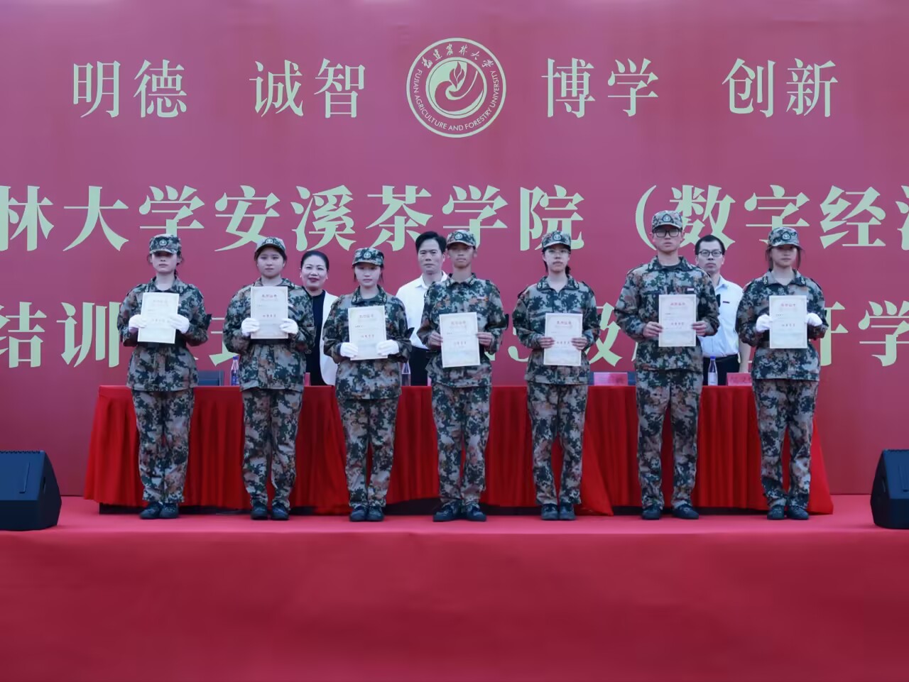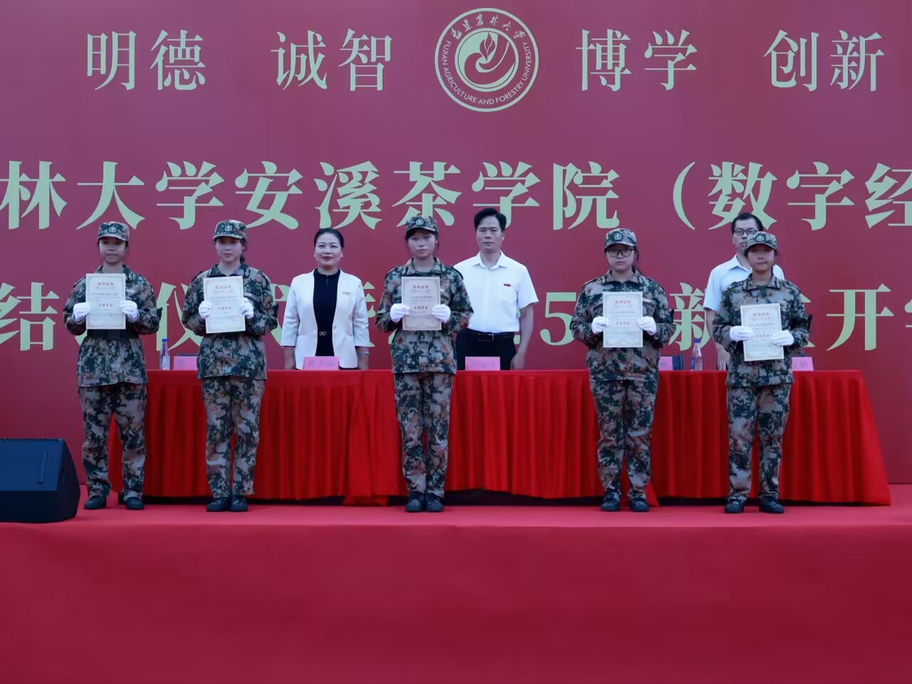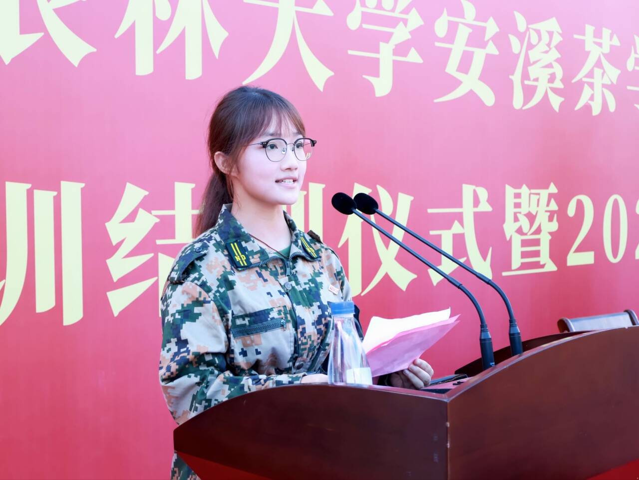 郭玉琼代表学院向圆满完成军训任务的新生表示亲切的问候与热烈的祝贺!并向为军训工作保驾护航的工作人员表示衷心的感谢。她介绍了学院历史、办学特色与成就,强调茶产业与数字经济融合发展的重要性;鼓励新生立鸿鹄志、怀赤子心、砺复合才、修茶人德,勇担乡村振兴使命,用青春与智慧赋能茶产业未来;最后,勉励同学们要矢志勤学笃行,锤炼过硬本领,敢于探索创新,成为兼具品德、学识与创新能力的新时代福农学子。