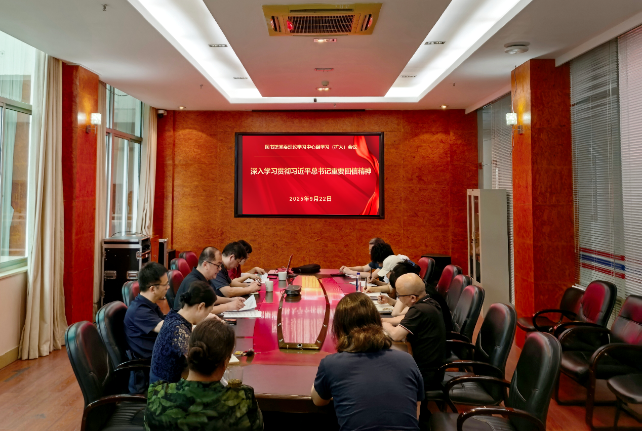 9月22日,图书馆党委在四楼会议室召开理论学习中心组学习(扩大)会议,专题学习习近平总书记给我校全体师生的重要回信精神。图书馆党委理论学习中心组成员、科级干部、党支部书记和内设部门负责人参加会议,会议由图书馆党委副书记(主持工作)叶扬捷主持。
