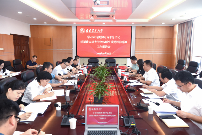 9月23日上午,校党委副书记陈世奎在福州仓山校区明德楼第二会议室主持召开学习宣传贯彻习近平总书记给福建农林大学全体师生重要回信精神工作推进会,校学习宣传贯彻重要回信精神工作领导小组办公室成员参加。