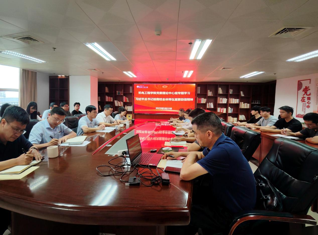 9月22日上午,机电工程学院党委理论学习中心组(扩大)会在大学城校区仁德楼718会议室召开,会议围绕习近平总书记给我校全体师生的重要回信进行深入学习研讨?;嵋橛裳г旱澄榧橇跏ぶ鞒郑г喊嘧映稍?、党委委员,科级干部、系主任、教工党支部书记、辅导员、学生会研究生会主席、学生党支部书记三十人参加会议。