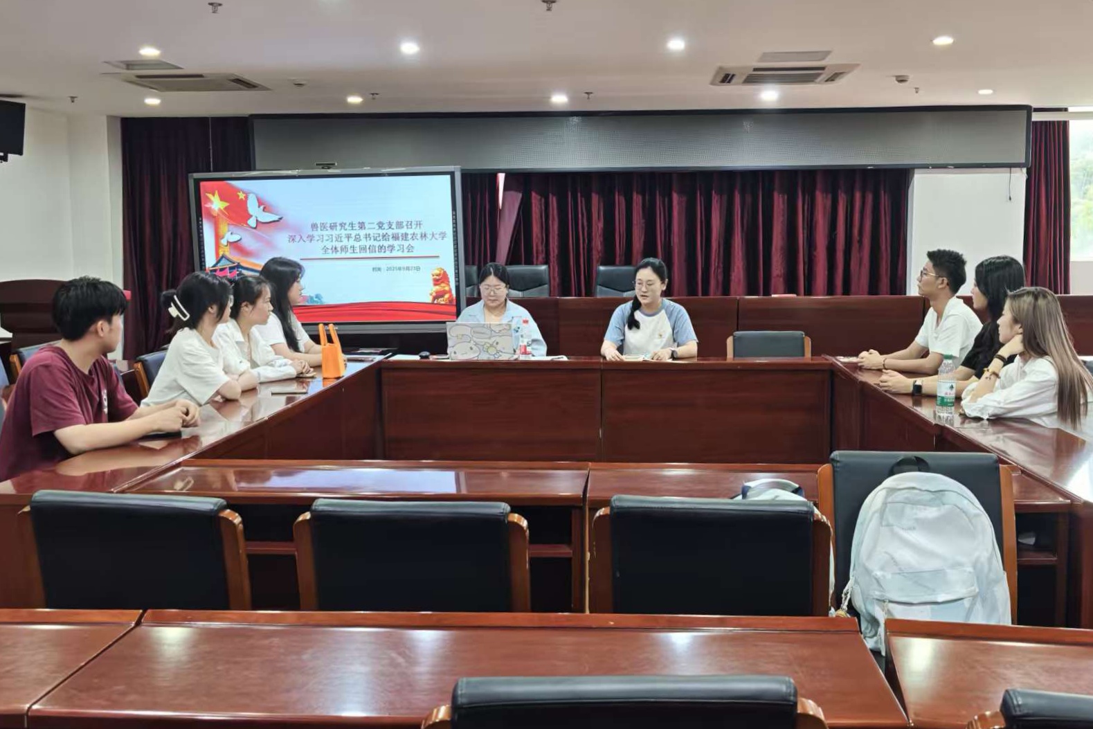 院团委书记吴元华表示:学习习近平总书记给福建农林大学全体师生的重要回信后,我深受鼓舞、倍感振奋。总书记“把更多好技术送到田间地头”的殷切嘱托,为学院团委工作指明了前进方向。作为共青团干部,我们将牢记总书记教诲,立足学院畜牧兽医专业特色,以“培养高素质农林人才、服务乡村振兴”为己任。我们将组建“畜牧科技先锋队”“兽医博士义诊服务团”,组织学生深入闽北、闽西农村开展养殖技术培训和疫病防控指导;同时打造“产学研用”实践平台,让青年学子在猪牛羊养殖、禽蛋生产等技术服务中锤炼本领,引导青年学子把论文写在八闽大地上,将畜牧兽医技术送到田间地头,为农业强国建设贡献青春力量。