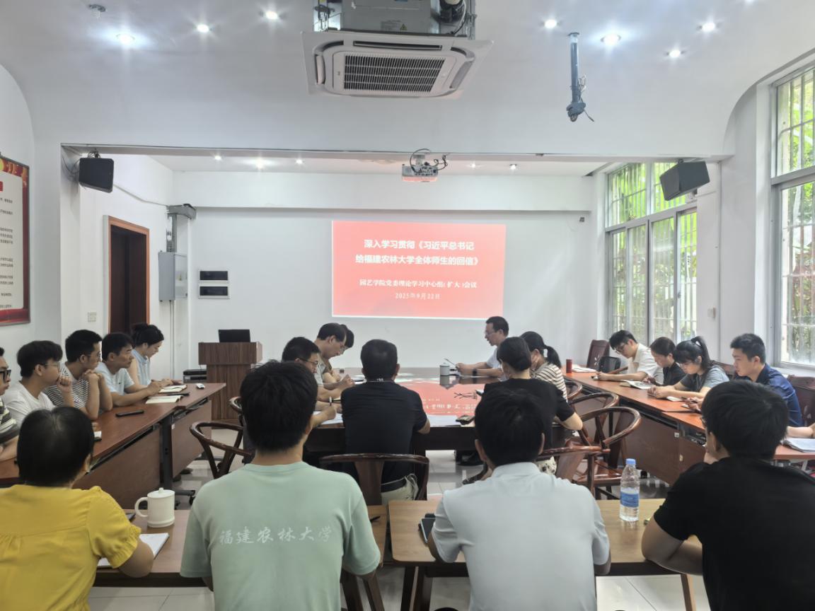 院党委副书记康恩慧表示,习近平总书记的重要回信思想深邃、内涵丰富、情真意切、催人奋进。将做好重要回信精神在青年学生中的宣传阐释、学习研讨,把习近平总书记的关怀厚爱和殷切期望有效传递给每一位青年学生;要聚焦农业强国建设对人才素质能力的需求,积极探索富有学院特色的思想政治教育,全面加强 “大国三农”情怀教育;要加强文化传承创新,以福果、福茶、福菜及花艺、茶艺等园艺特色文化推动“福”文化资源转化利用,讲好福农故事、福建故事、中国故事,为培育知农爱农新型人才作贡献。
