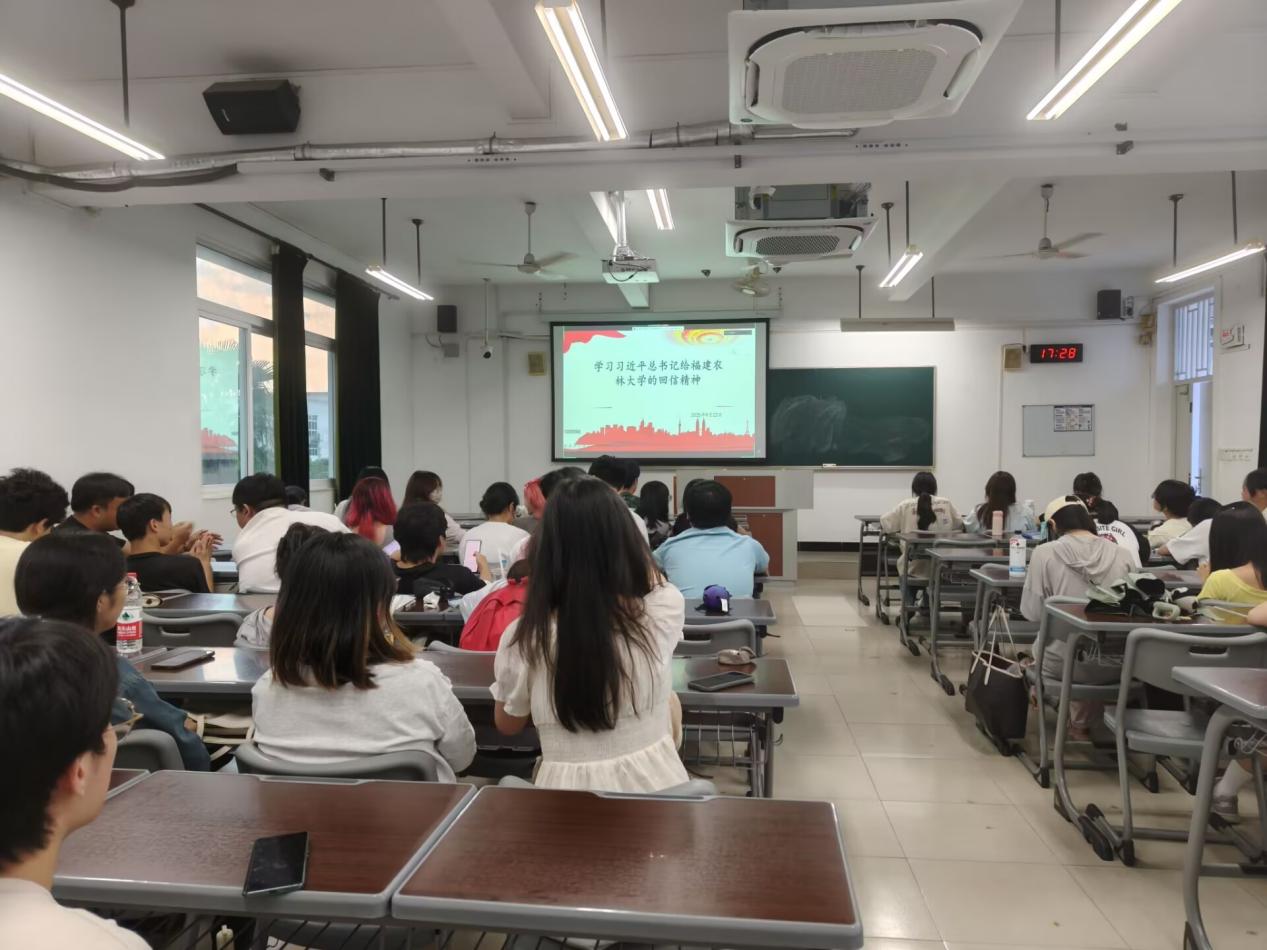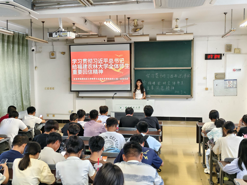 会上,辅导员许惠指出,习近平总书记给福建农林大学全体师生的重要回信情真意切、内涵丰富,令全体师生倍感振奋。这既是对学校办学成就的充分肯定,更是对未来的殷切期望,为学院高质量发展指明了前进方向、提供了根本遵循。为将学习引向深入,团学骨干与各班级团员代表积极响应,当天即召开班团会将回信精神及时传达至每一位同学,实现学习全覆盖。全院学生深学细悟,纷纷结合专业实际畅谈心得,表示要将总书记的嘱托内化于心、外化于行。