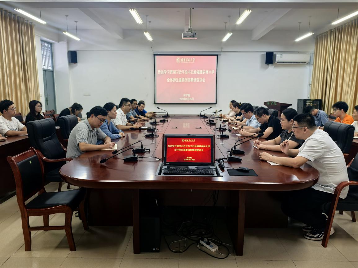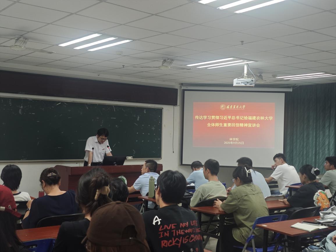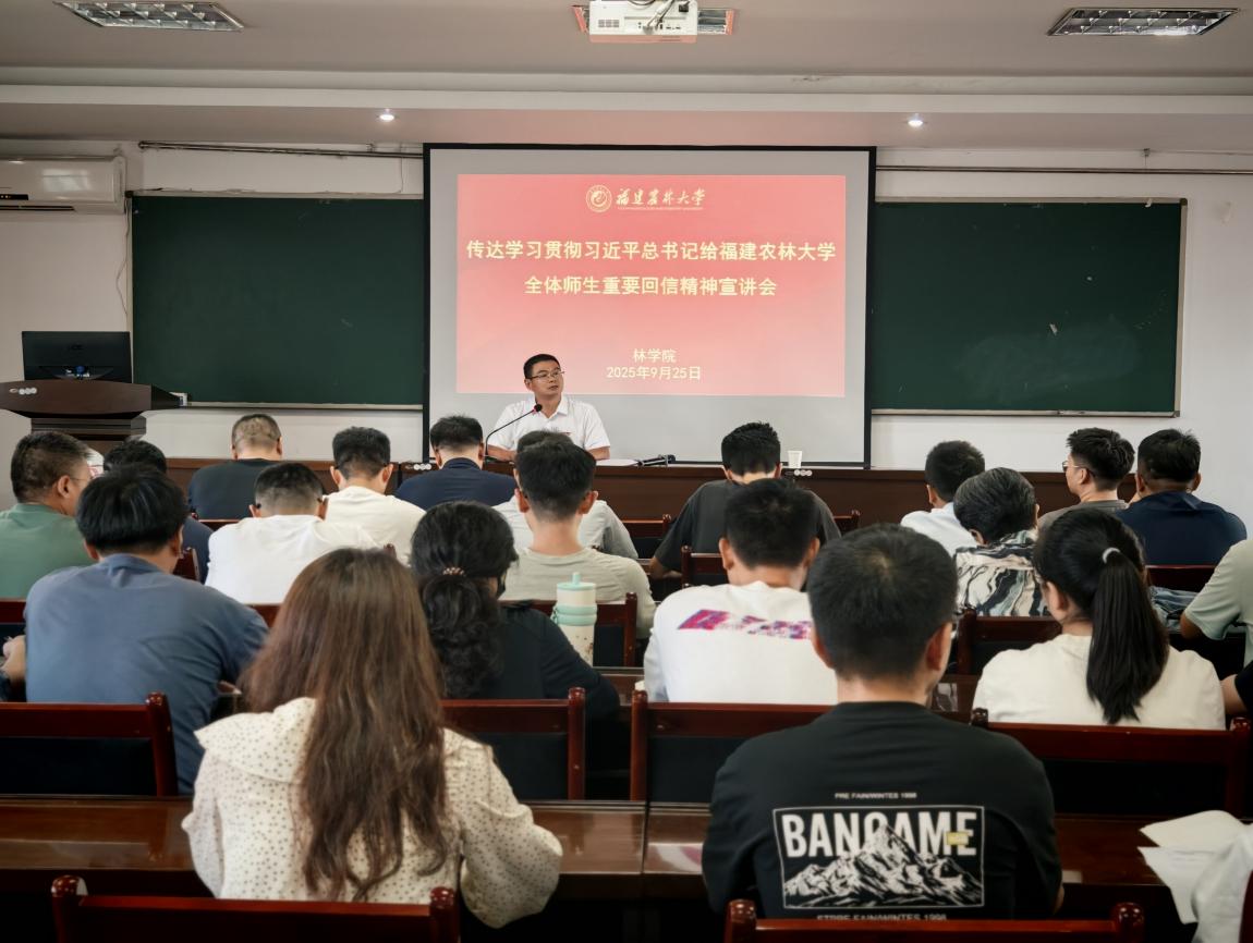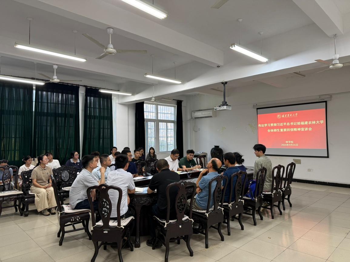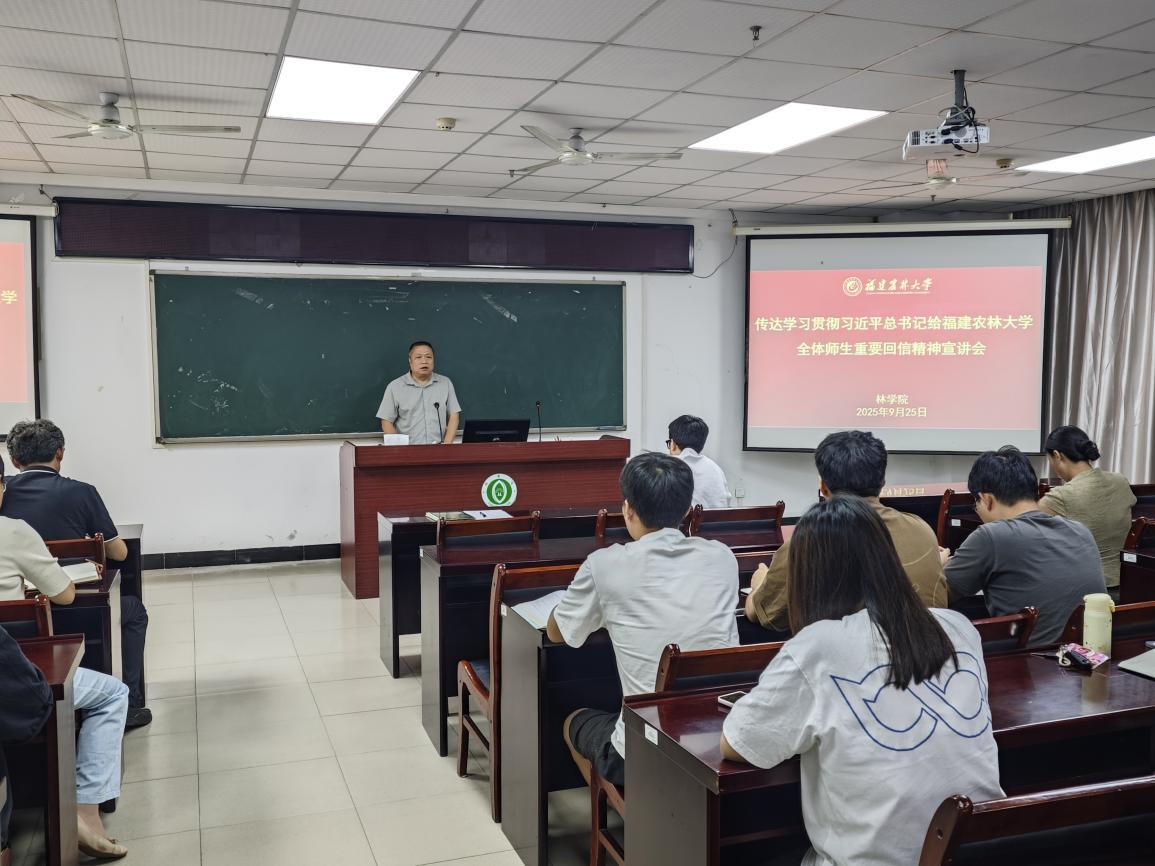 在福建农林大学合并组建25周年的重要历史时刻,林学院迅速掀起学习贯彻习近平总书记给全校师生重要回信精神的热潮。9月25日下午,学院党政领导班子分赴各系、实验中心、党支部开展专题宣讲,推动回信精神在基层落地生根。