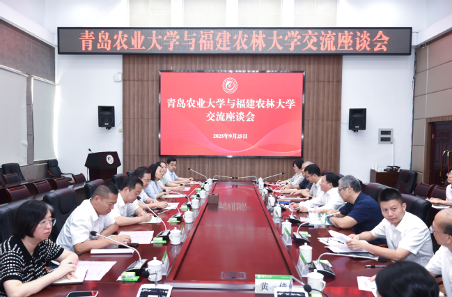 赖海榕代表学校对赵金山一行到来表示欢迎。他表示,山东青岛农业、渔业资源丰富,产业基础良好,发展势头强劲。长期以来两校在人才交流、科学研究、比赛竞技等方面相互帮助、合作密切,取得丰硕成果。当前全校上下正深入学习贯彻习近平总书记给福建农林大学全体师生的重要回信精神,深化两校合作、加强人才交流互动、联合开展科研攻关、推动特色优势农业产业发展,正是落实习近平总书记提出的“深耕‘三农’”“努力培养更多高素质农林人才”“把更多好技术送到田间地头”重要要求的具体实践。学校将充分发挥学科和人才优势,与青岛农业大学开展全方位合作,共同为推进乡村振兴、建设农业强国作出更大贡献。