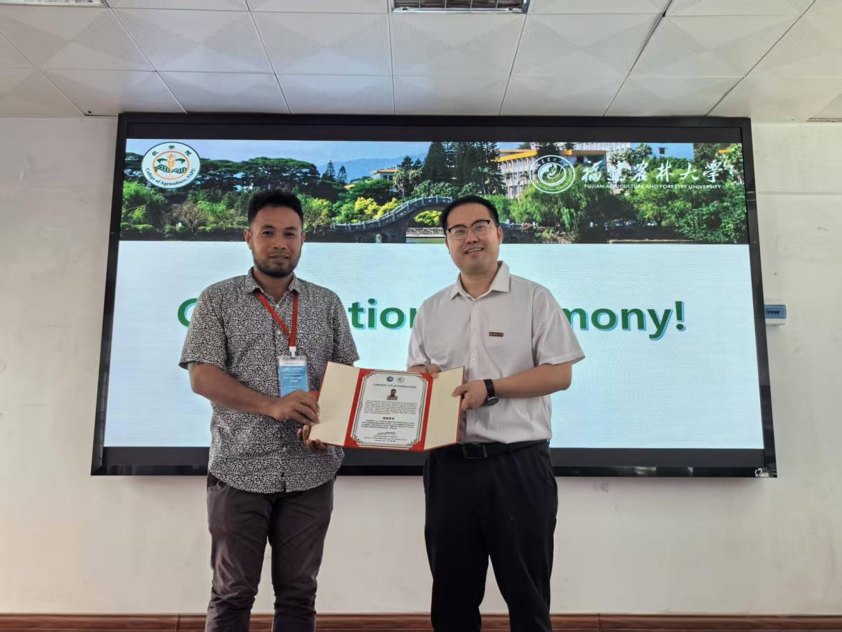 9月26日上午,由福建省人民政府外事办公室组织、福建农林大学主办、农学院承办的太平洋岛国农作物技术应用减贫培训班在农学院三楼会议厅圆满落幕。农学院党委副书记(主持工作)林喜强、副院长兰涛、教师代表及14名来自巴布亚新几内亚、斐济、汤加、所罗门群岛的学员齐聚一堂,共同见证圆满结业的重要时刻。