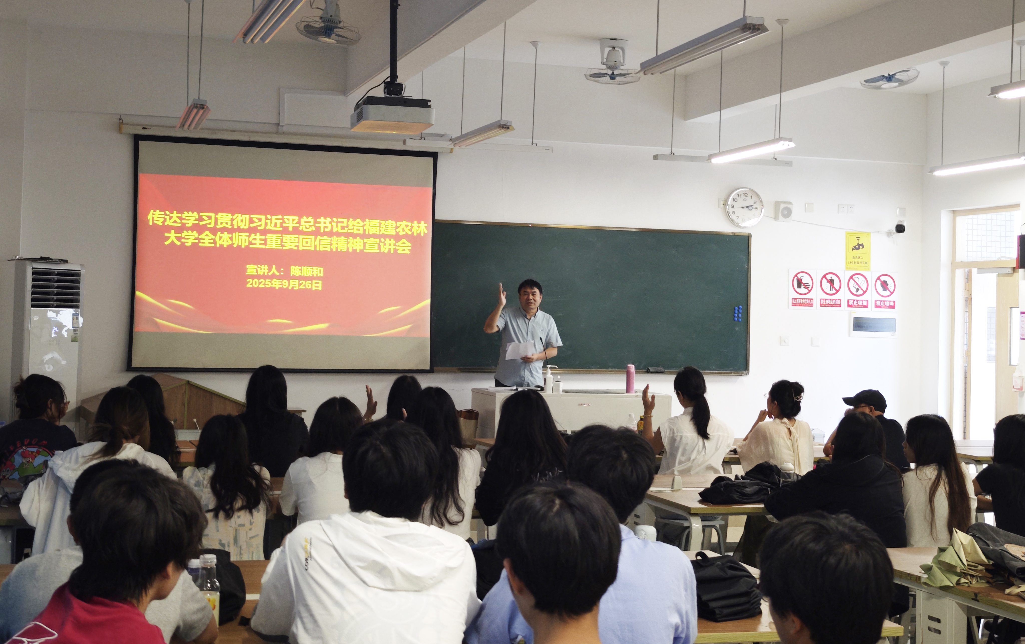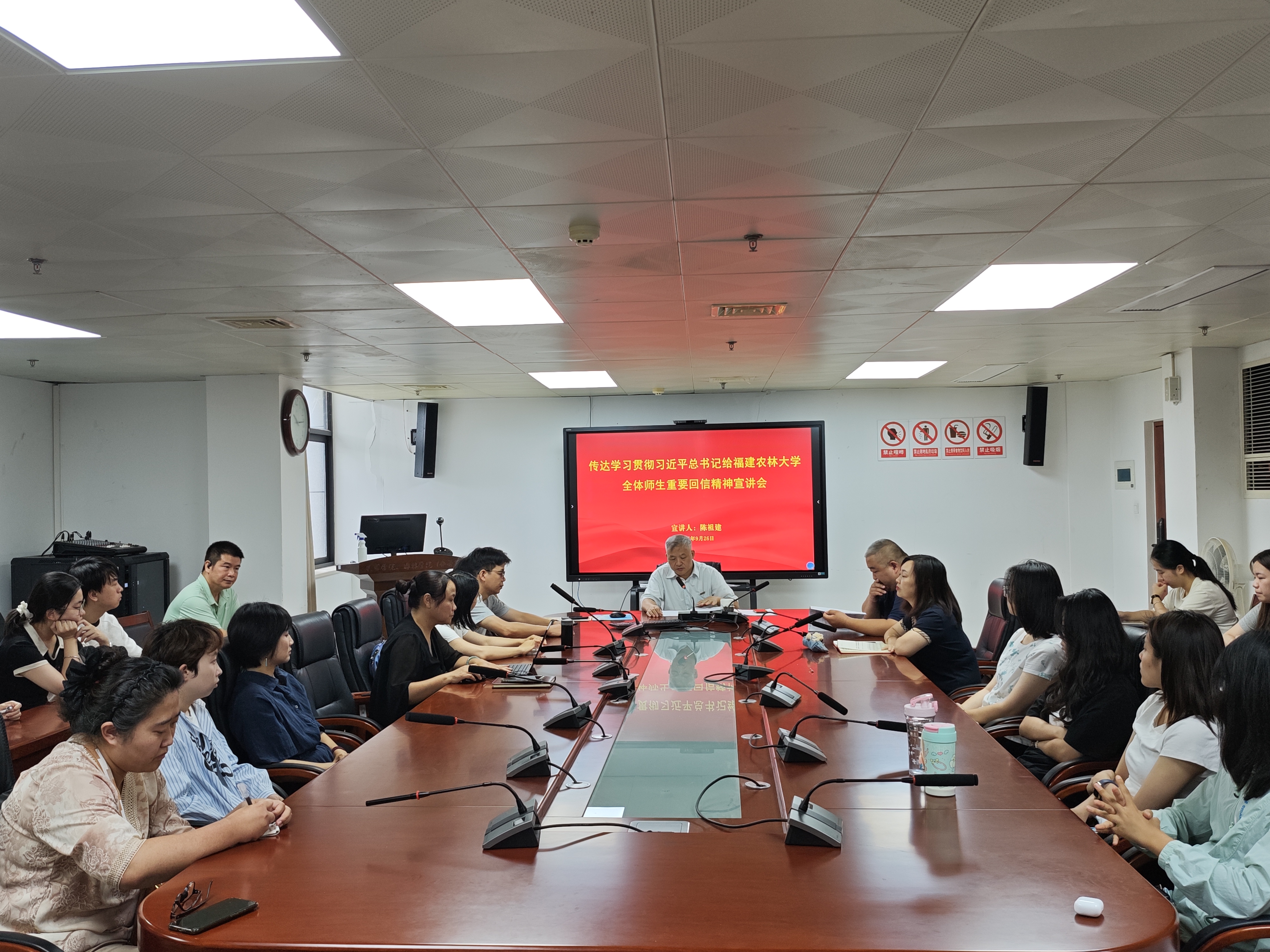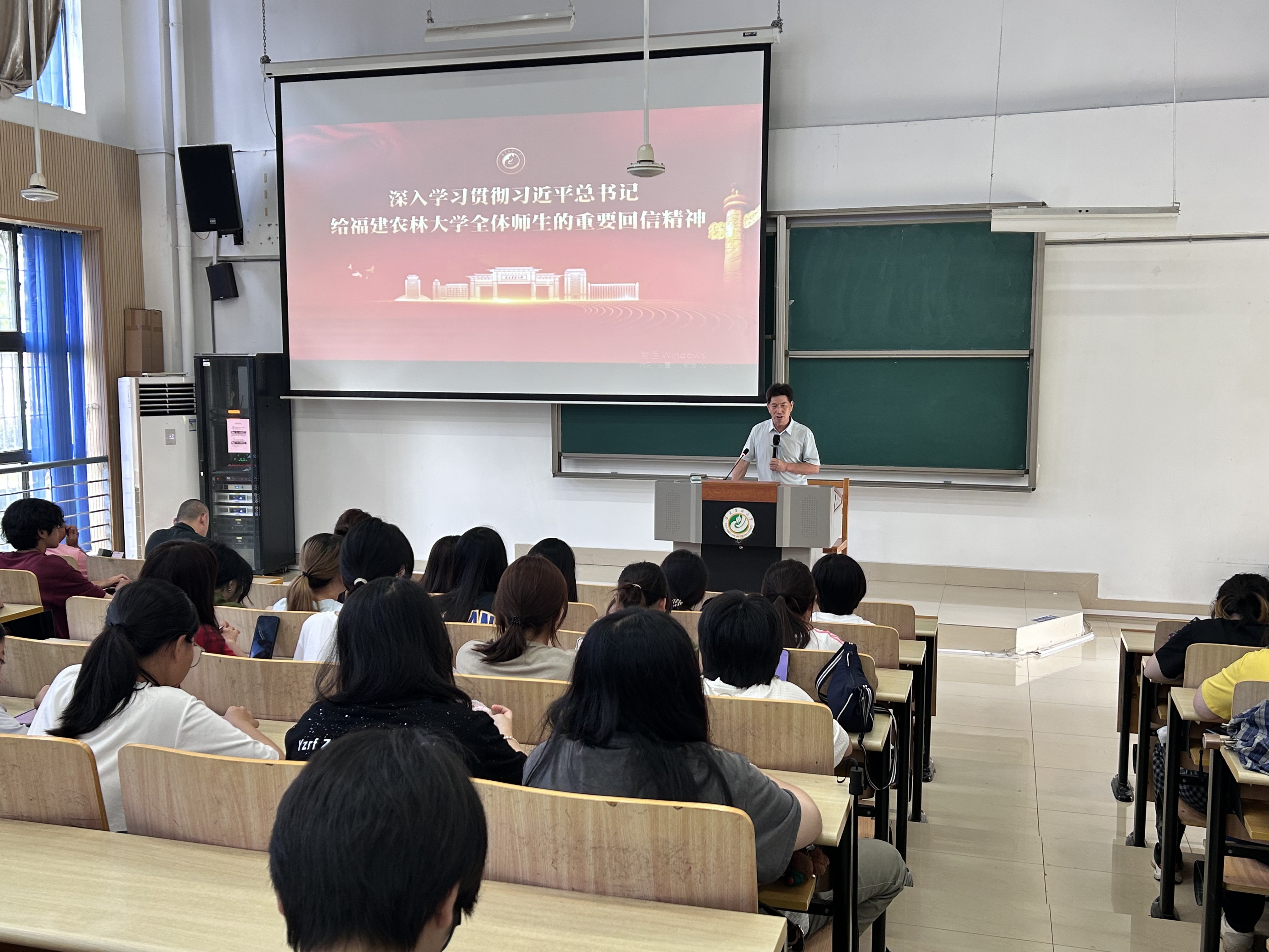 宣讲会上,学院领导原原本本传达了习近平总书记9月20日给福建农林大学全体师生的重要回信,以及9月21日福建省委书记周祖翼专程莅校宣读并与我校师生代表共同认真学习贯彻重要回信精神时对我校建设发展提出的具体要求、9月22日福建省委书记周祖翼在主持召开省委常委会会议时的讲话精神,传达学习了校党委关于做好学习宣传贯彻重要回信精神的工作部署和具体要求。