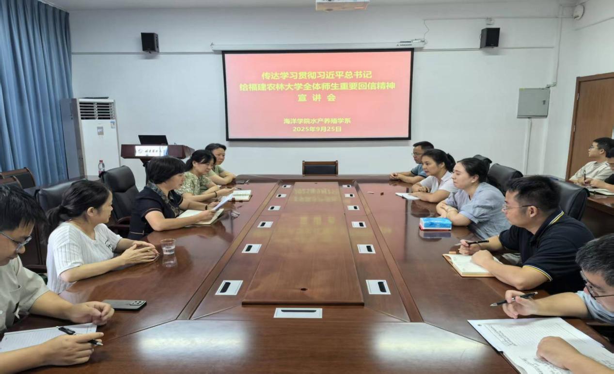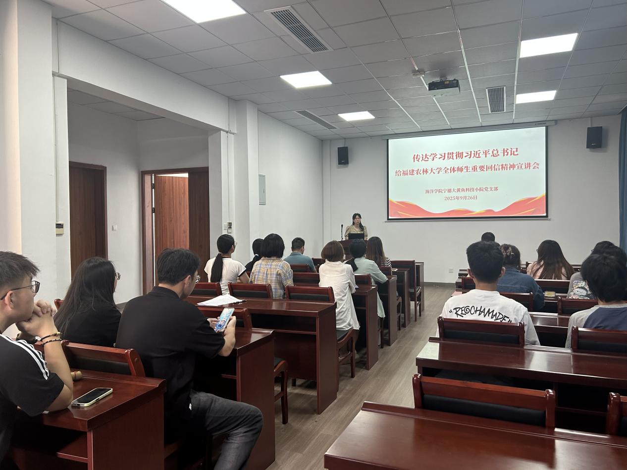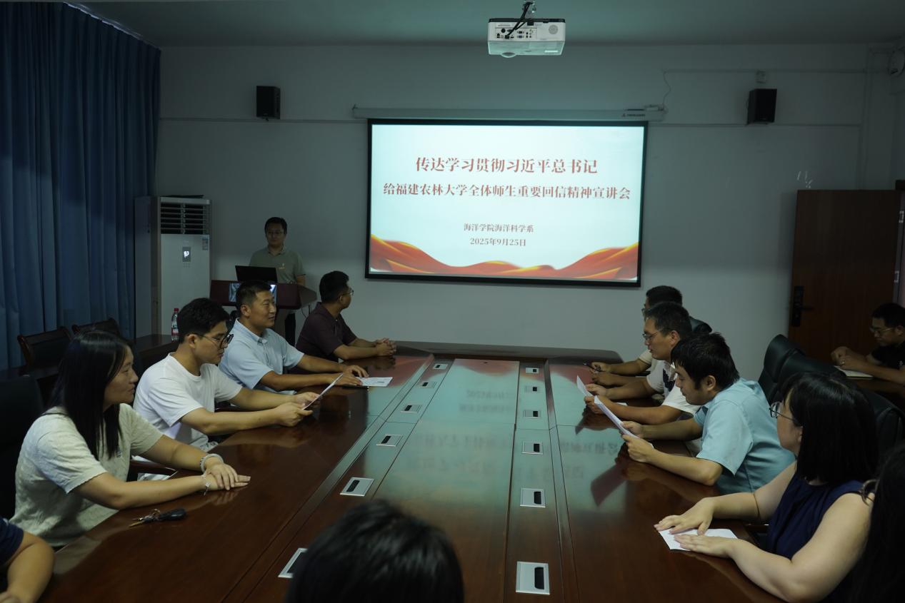 为了推动学习贯彻习近平总书记给福建农林大学全体师生重要回信精神走深走实,9月25日,海洋学院党政领导班子深入各系、实验中心、科研团队及师生党支部,面向全体师生开展专题宣讲活动,切实推动回信精神在基层落地生根。