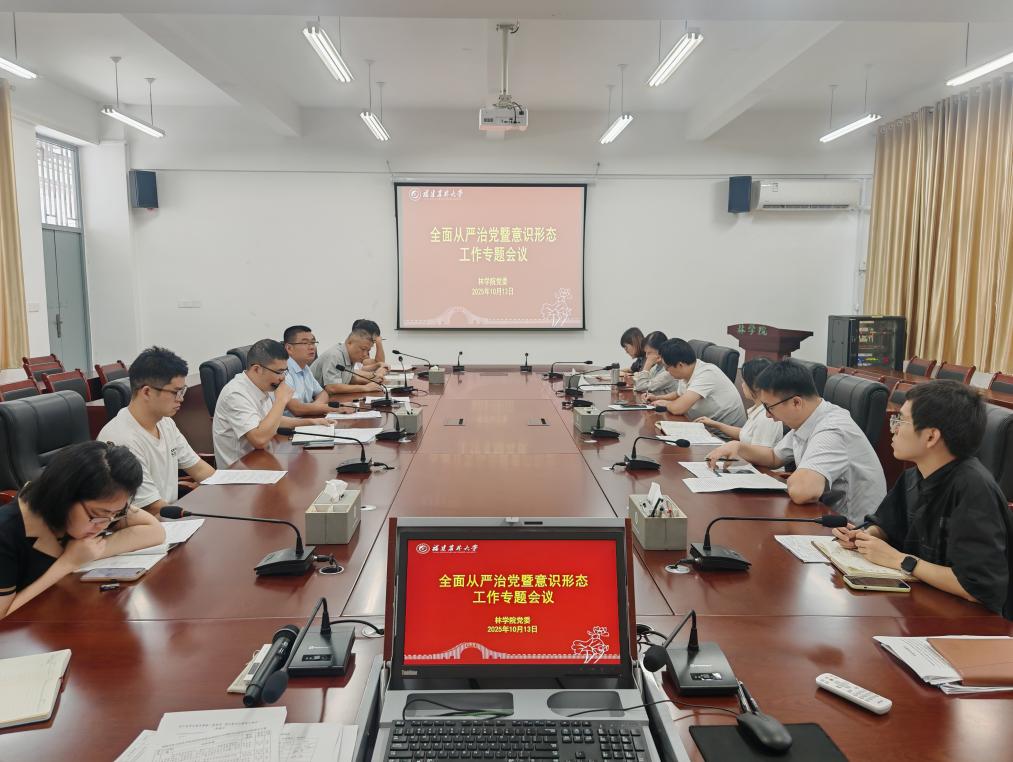 10月13日,林学院在诚A206召开全面从严治党暨意识形态工作专题会,学院党政领导班子成员、党支部书记及各系主任参加会议,会议由学院党委副书记(主持工作)余坤勇主持。