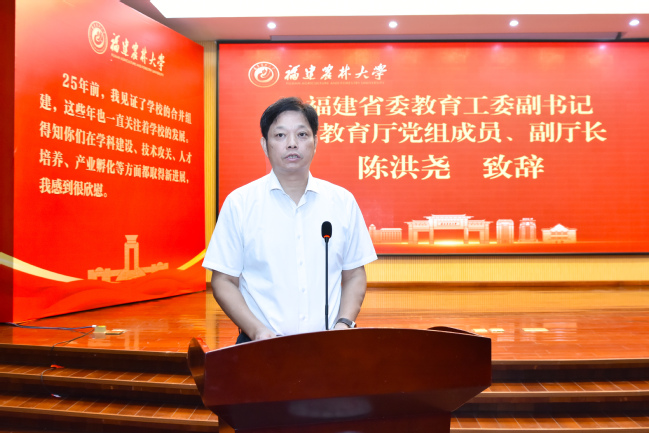 陈洪尧表示,习近平总书记给福建农林大学全体师生的重要回信饱含着对福建农林大学和福建教育的深情厚爱,更体现了党中央对高等农林教育和“三农”工作一以贯之的重视与关怀。省教育厅将加大力度支持福建农林大学各项事业的改革发展,希望福建农林大学加快争创国家“双一流”建设高校,以实干实绩回报总书记的殷切期望,为奋力谱写中国式现代化福建篇章作出新的更大的贡献。