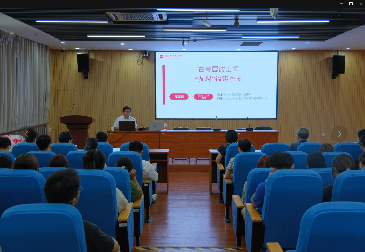 10月17日下午,福建师范大学教授、博士生导师、中国美国史研究会理事、美国哈佛大学访问学者江振鹏应邀做客我校金山讲坛第156讲,在逸夫图书馆为我校师生作了题为《在美国波士顿“发现”福建茶史》的讲座。讲座吸引了200余名师生到场聆听。
