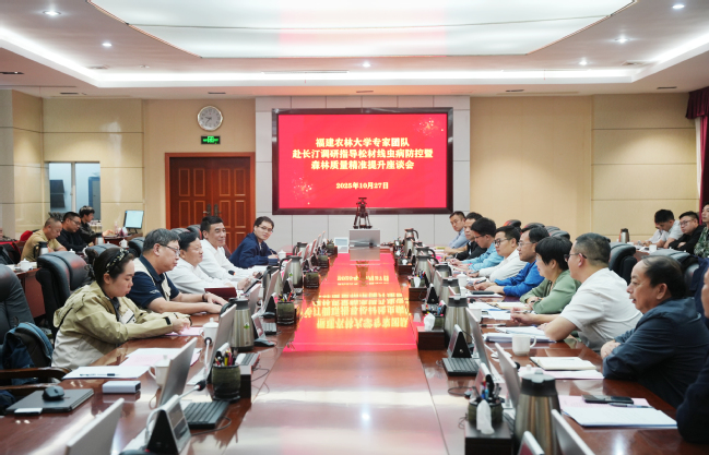 10月27日,福建农林大学校长兰思仁率专家团队赴长汀调研松材线虫病防控暨森林质量精准提升工作,深入田间地头一线走访并召开座谈会。龙岩市林业局局长林德文、副局长汤钦洪,长汀县县长吕莉,县领导连元彬,县直有关单位及乡镇负责人参加。