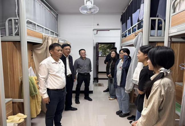 在学生宿舍楼,陈世奎走进学生寝室,查看学生的住宿环境条件,与同学们拉家常,细心询问同学们的家乡地、饮食习惯、入学以来的适应情况等,认真听取同学们对校区管理服务、后勤保障等方面的意见与建议。陈世奎特别叮嘱同学们,要养成良好的生活习惯,保持积极向上的心态,勤奋学习,加强体育锻炼,以饱满的精神状态投入到学习生活中。