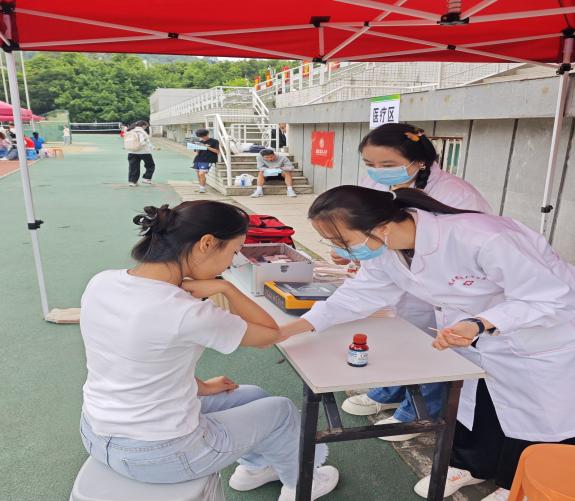 此外,学校的人性化服务贯穿测试全程。公体部为参测学生准备了点心和饮用水,在长跑测试区特别备有葡萄糖水、医疗点和休息区,为学生提供充足的体能和健康保障。测试过程中,要求各学院辅导员全程在岗,及时反馈学生情况,并确保学生身体无恙后方可离开,将“以生为本”的理念落到实处。