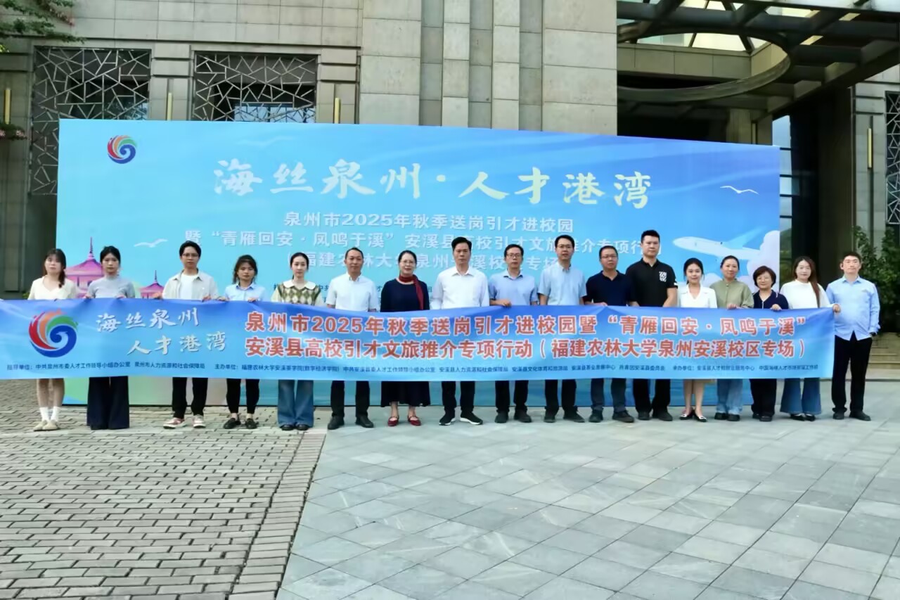 10月30日,泉州安溪校区联合中共安溪县委人才工作领导小组办公室、安溪县人力资源和社会保障局、安溪县文化体育和旅游局、安溪县茶业发展中心、共青团安溪县委员会在校区怀德楼诚智报告厅举办2025年秋季送岗引才进校园推介活动。泉州安溪校区校园管理办公室主任黄成茂,副主任张云帆、洪涛,安溪县人社局副局长傅淑媛,安溪县人才和就业服务中心主任张杰培,安溪县人才和就业服务中心副主任吴志河,共青团安溪县委学少部部长沈益裕,中国海峡人才市场安溪工作部主任吴毅强,泉州安溪校区学工部部长黄国栋,以及安溪重点企业人力资源负责人代表受邀出席本次推介活动。本次活动由安溪县茶文化艺术中心孙雨馨主持。