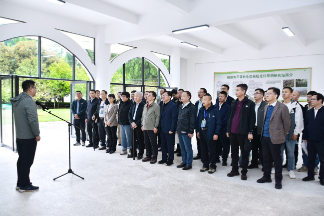 王兵在致辞中感谢福建农林大学对野外科学观测站工作的大力支持,对学校在生态观测站建设的前瞻规划以及已建成的标准化的气象站、高规模的径流场、较为齐全的实验样地布设表示肯定,并对“专家团队-样地”的模块化地、较为持续的科研活动研究表示赞许。他强调,建设该生态定位站对揭示东南区域乃至全国的森林生态系统规律,发挥森林资源多功能内涵具有重要推动作用,希望进一步增强综合观测、数据质量管理及人才队伍建设,把武夷山脉生态观测站建成国内一流、国际有影响力的科研平台,为我国生态文明建设贡献重要力量。