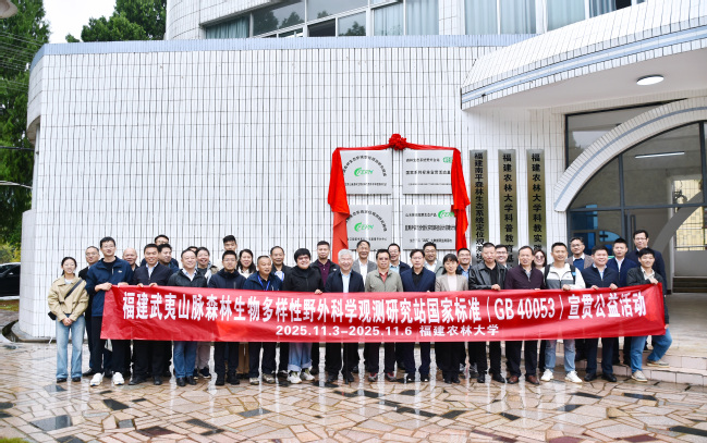 11月4日,福建武夷山脉森林生物多样性野外科学观测研究站国家标准(GB 40053)宣贯公益活动在福建农林大学南平延平校区隆重举办?;疃荚谏钊牍岢构疑拿鹘ㄉ枵铰圆渴穑贫稚低扯ㄎ还鄄庋芯客绫曜蓟?、规范化发展,为构建现代化生态监测体系、实现跨区域协同?;ぬ峁┛蒲еС拧;疃诩?,多个国家级平台与基地落地福建农林大学南平西芹科教与艺术基地。CFERN首席科学家王兵,福建农林大学党委书记赖海榕、副校长周顺桂、校长助理陈娟出席活动。