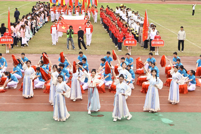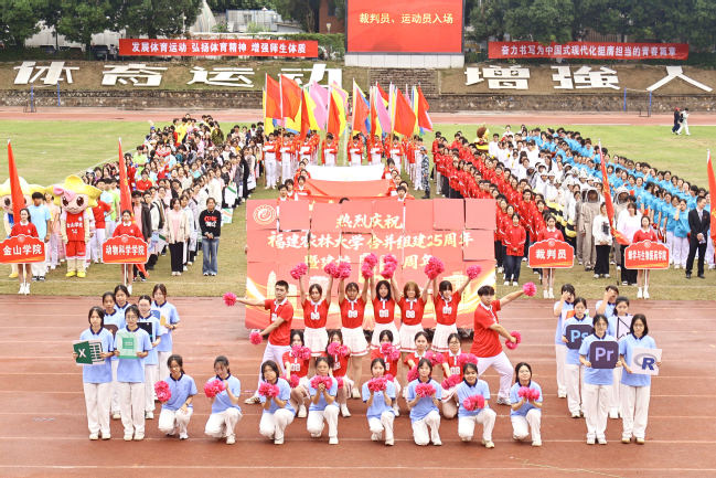 开幕式上还上演了精彩纷呈的文体项目表演,古筝合奏《刀剑如梦》以弦音勾勒侠气风骨,武术表演《形意流云》用招式诠释传统底蕴,啦啦操表演《青春舞步》以活力点燃全场气氛,街舞表演《筑梦未来》用律动展现奋进姿态,系列节目将体育的动感、文化的厚重与艺术的灵动深度融合,生动呈现了福建农林大学学子朝气蓬勃的青春风貌,多维度呈现了学校体育文化建设的丰硕成果与浓厚氛围。