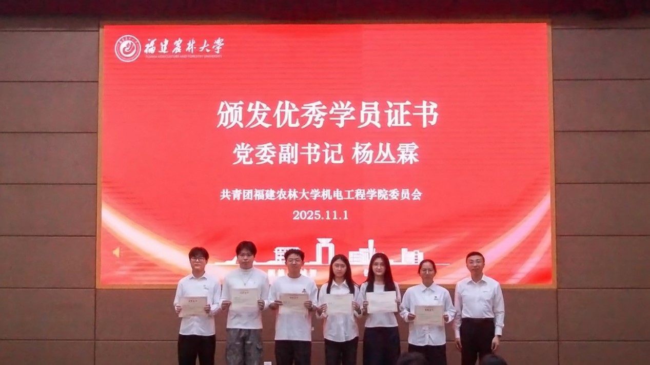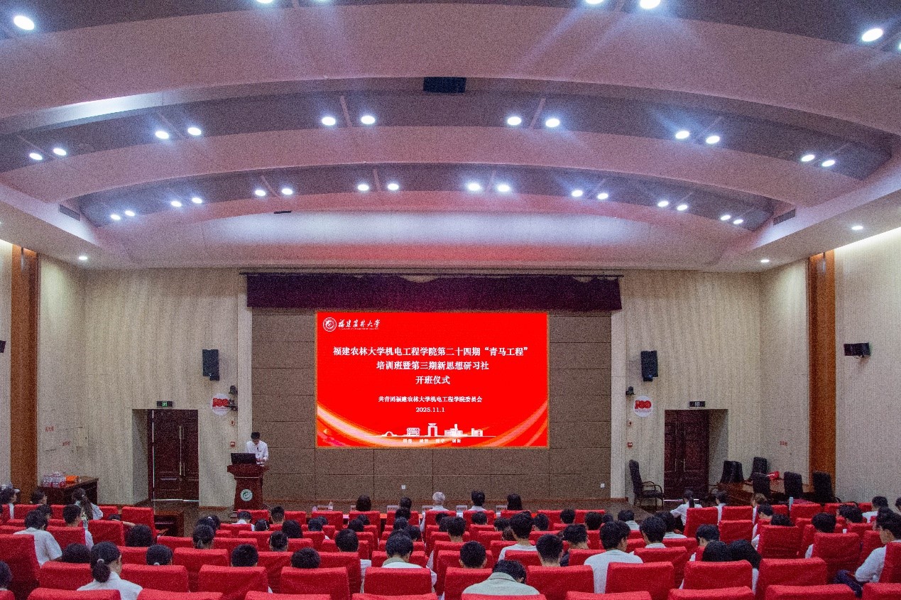 11月1日,福建农林大学机电工程学院第23期青年马克思主义者培养班(以下简称“青马班”)、第2期新思想研习社(机电工程学院)(以下简称“研习社”)结业仪式暨第24期青马班、第3期研习社开班仪式在福州大学城汇智报告厅举行。福建农林大学关工委副主任庄哲峰、学院党委副书记杨丛霖、团委副书记唐琳婕、辅导员代表及全体新老学员共出席了本次大会,见证了一场思想的接力与薪火的传承?;嵋橛汕嗦戆喟嘀魅尾探粗鞒?。