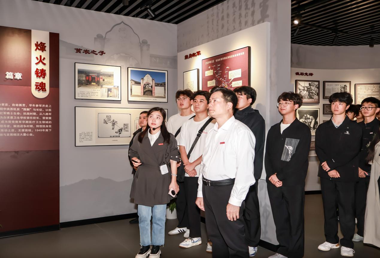 刚揭牌不久的江一真专题展厅内,先辈投身革命与教育事业的峥嵘岁月令人动容。在讲解员的生动讲述下,师生们深入了解了这位学校奠基者“扎根大地”的务实精神与一心为民的宗旨意识,其甘于奉献的崇高品格为在场师生树立了精神标杆,让红色基因在沉浸式学习中代代相传。