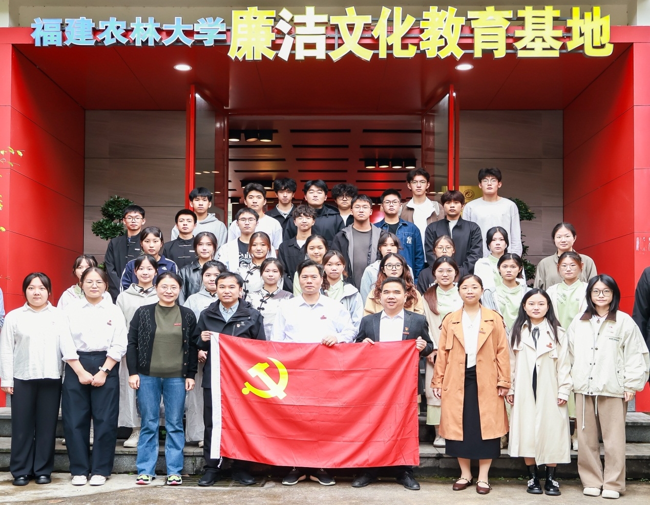 在福建农林大学廉政文化教育基地,教育系统及产业领域的典型案例剖析直击人心。通过图文展示、情景还原等形式,案例中触目惊心的违纪违法事实为师生敲响廉洁警钟,推动廉洁自律意识浸润人心。参观尾声,黄成茂带领全体党员面向党旗重温入党誓词,铮铮誓言铿锵有力,进一步强化了党员的理想信念与责任担当,凝聚起奋进新时代的磅礴力量。