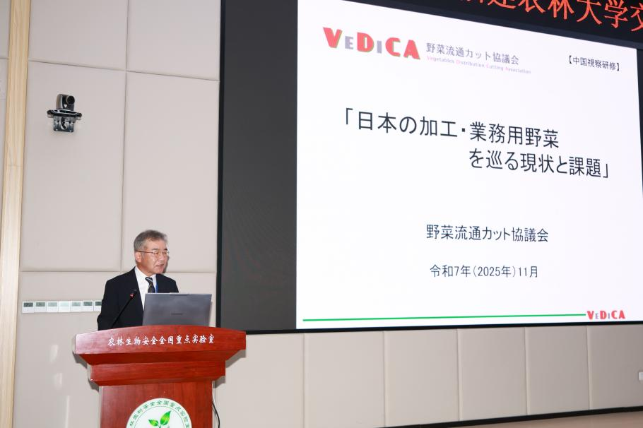 日本设施园艺协会常务理事藤村浩代表日方汇报了近年来日本在推动蔬菜产业现代化、标准化方面的主要举措与成效,重点介绍了在稳定生产供应、强化质量安全追溯、创新流通模式等方面的实践经验。双方就智能化装备应用等议题展开深入讨论,并在推动技术合作与人才交流方面达成多项共识。